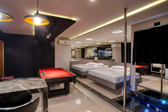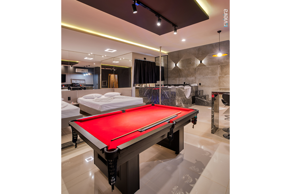 A Suíte Boteco conta com o diferencial da mesa de sinuca para casais que gostam de diversão, mas não dispensam conforto e momentos de prazer!